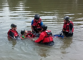 Przećwiczono także użycie pontonu do działań ratowniczych na wodzie tj.