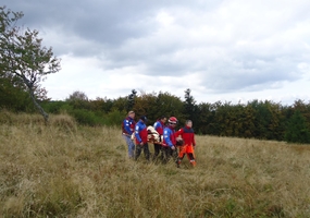 przetransportowany przy wykorzystaniu samochodu terenowego do oczekującej na dole karetki pogotowia ratunkowego.