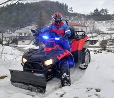 Ratownicy przy użyciu pojazdu dwóch quadów docierają do miejsca zamieszkania kobiety, po czym niezwłocznie przystępują do transportu w dół, i dalej wprost do