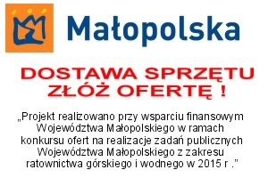 w ramach Projektu realizowano przy wsparciu finansowym Województwa Małopolskiego w ramach konkursu ofert na realizacje zadań publicznych Województwa Małopolskiego z zakresu ratownictwa górskiego i wodnego w 2015 r Grupa Krynicka GOPR, planuje zakup sprzętu ratowniczego oraz pomocniczego do działalności w górach.