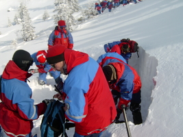 Odbyło się również wyjście skiturowe ze szczególnym uwzględnieniem właściwego doboru trasy pod kątem zagrożenia lawinowego, oraz pozorowane lawinowe akcje ratunkowe - zarówno w małym zespole (tzw. autoratownicze) oraz z użyciem dużej ilości ratowników i sprzętu.