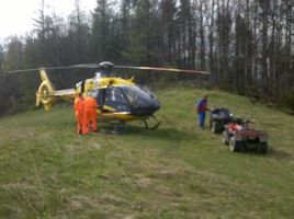 szlaku w pobliżu Makowicy. Na miejsce błyskawicznie udają się ratownicy GOPR z Rejonowej Stacji Ratunkowej w Piwnicznej-Zdroju, jadąc na dwóch qudach po drodze