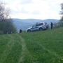 się z drogi leśnej przez polanę i wpadł do jaru, uderzając w drzewo.W