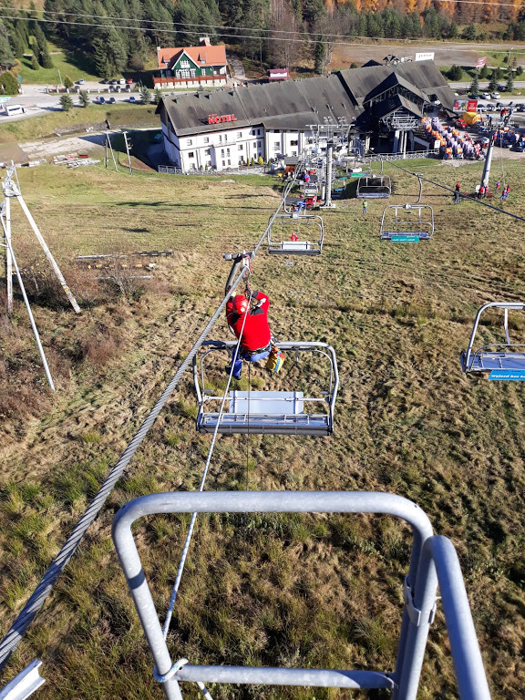 szkolenie z zakresu ewakuacji w przypadku awaryjnego zatrzymania kolei linowej.